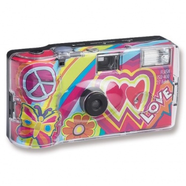 Aus Kunststoff in einem schwarz/ bunten Design verarbeitet, ist die Einwegkamera. Die Einwegkamera entspricht den Qualitätsvorgaben der ISO 400. Mit der Einwegkamera kann man bis zu 27 Bilder machen. Die Einwegkamera ist mit einem Blitz ausgestattet, für den Betrieb ist eine Batterie notwendig. Als Zubehör zur Einwegkamera gehört auch eine Batterie. Doch nicht nur eine Batterie gehört zum Angebot bei dieser Einwegkamera, sondern auch ein leistungsstarker Film von einem Markenhersteller.