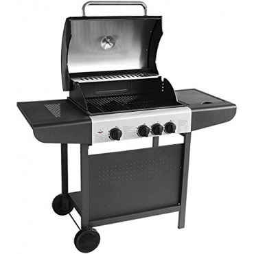 Eine besonderer Vorteil dieses praktischen Gasgrills ist die Vielseitigkeit der Kochmöglichkeiten, die es erlaubt, viele verschiedene Gerichte auf dem Grill zuzubereiten. Der Grill verfügt über drei leistungsstarke Hauptbrenner und einen Seitenbrenner, der ausgezeichnet zum Zubereiten von Saucen geeignet ist. Der Grill kann mit einem Deckel abgedeckt werden und ist mit einem integrierten Thermometer ausgestattet. So kann man auch größere Fleischstücke beim indirekten Grillen schonend und saftig garen. Mit der Piezo Zündung ist der Grill in Sekunden startbereit.