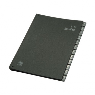 Mit dem ELBA Pultordner lassen sich Unterlagen oder Post sauber und übersichtlich sortieren. Er ist mit zwölf nummerierten Fächern und den Taben Januar bis Dezember unterteilt. Der Ordner wurde aus robusten, umweltfreundlichen Material angefertigt und schützt die Dokumente zuverlässig. Die überstehenden PP-Taben ermöglichen einen übersichtlichen und einfachen Zugriff. Mittels der Sichtlöcher auf den schwarzen Zwischenblättern können eingeordnete Unterlagen sofort erkannt werden.