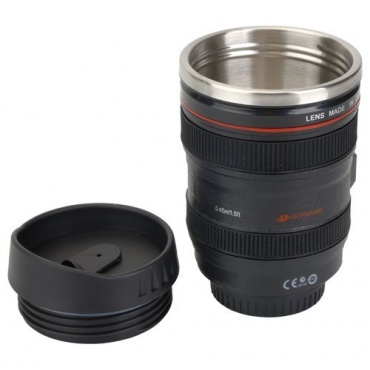 Der Becher besteht aus lebensmittelechtem Kunststoff und einer sehr soliden und dämmenden Edelstahl-Hülse. Die Edelstahl-Innenwand sorgt gleichzeitig für die erforderliche Hygiene und lässt sich leicht reinigen. Der schöne Becher verfügt über eine sehr gute Haptik und Ergonomie, so dass dieser sehr komfortabel gehandhabt werden kann. Besonders beeindruckend bei dem trendigen Becher ist auch die hohe Detailtiefe des nachempfundenen Objektivs. Der praktische Becher besteht aus hochwertigen Matrialien und ist sorgfältig verarbbeitet. Der Thermobecher verfügt damit über ein sehr gutes Verhältnis von Preis und Leistung.