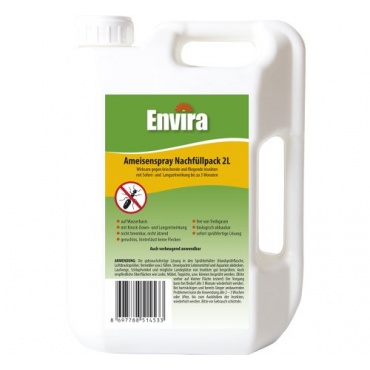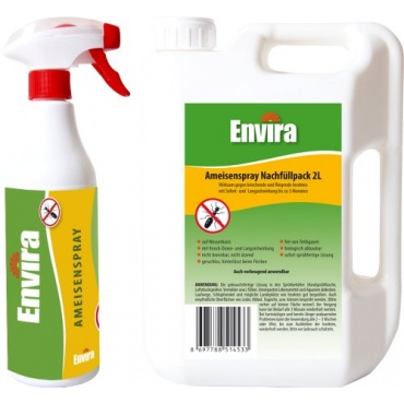 - Der 500 Mililiter Handsprüher Ameisenspray von Envira und der zwei Liter Kanister sind sehr zu empfehlen und haben keine Nachteile.