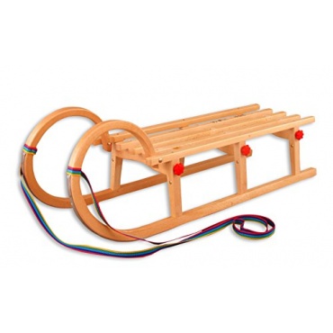 Dieser Schlitten überzeugt durch sein Material. Hierbei handelt es sich um edles Holz, welches in einer geschwungenen Form einen gelungenen Abschluss findet. Abgesehen davon, ist es möglich, diesen Schlitten auch platzsparend zusammenklappen zu können. Die Bänder, welche bei diesem praktischen Schlitten noch verfügbar sind, zeigen sich in einem elegantem Blau - Ton.