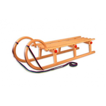 ökologischem Lack versehen. Farblich ist der Holzschlitten in einem natürlichen Holzfarbton gehalten. Die Abmessungen vom Holzschlitten betragen 125 x 74 x 10 cm.