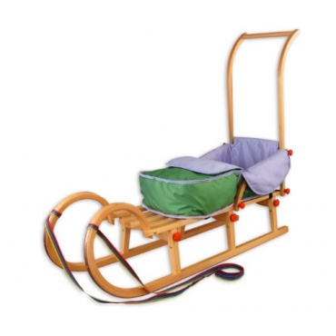Mit einer Schubstange, aber auch mit einem Zugseil ausgestattet ist der Holzschlitten. Der Holzschlitten eignet sich aufgrund seiner Ausstattung die unter anderem aus einem Fußsack besteht, auch sehr gut für Kleinkinder. Der Holzschlitten ist aufgrund seiner Abmessungen sehr kompakt und einfach in der Benutzung.