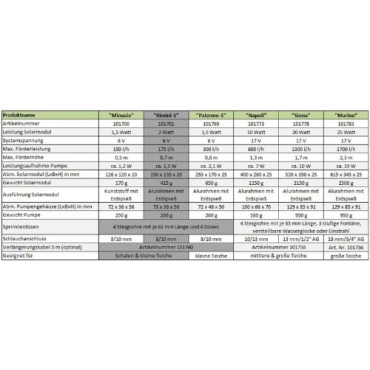 | geeignet für | Gartenteich, Pflanzschale oder Versorgung kleiner Wasserspeier |