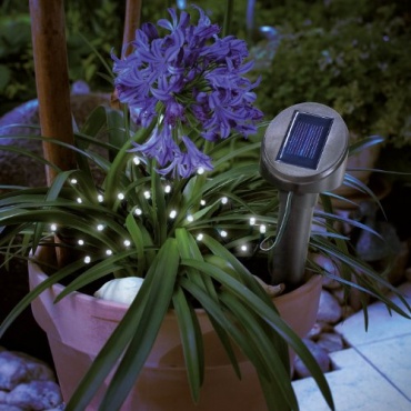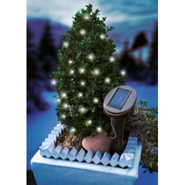 Diese Lichtkette ist vollständig mit LEDs ausgestattet und benötigt keine Stromanbindung. Der Akku der Lichterkette läd sich solar auf und sammelt so genug Energie um die 24 LEDs die ganze Nacht aufleuchten zu lassen. Die Beleuchtung schaltet sich mit Einbruch der DUnkelheit automatisch ein. Die Montage besteht prinzipiell nur aus der Dekoration an sich und die Platzierung des Akku an einem Ort, an dem er die Energie von der Sonne aufnehmen kann.