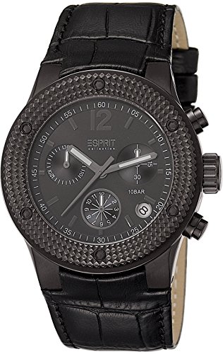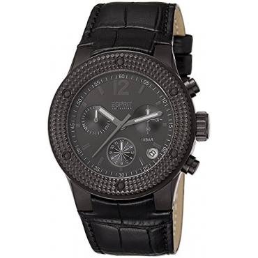 Die Damen Armbanduhr AChronograph des Mode- und Schmuckherstellers Esprit überzeugt durch ihr klares Design mit modernen Features und hochwertigem Quarzuhrwerk. Das Uhrenmodell aus der Kollektion Anteress bietet eine stimmige Trendoptik mit schwarzem Gehäuse, Chronograph-Anzeige, schwarzem Ziffernblatt und ebenfalls schwarzem Armband aus Echtleder. Der Chronograph verfügt neben Leuchtzeigern über eine Datumsanzeige und eine Stoppuhr-Funktion.