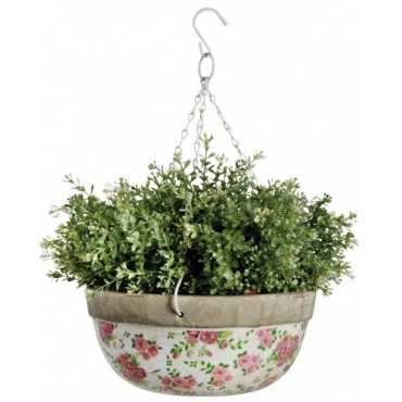 Die Blumenampel von Esschert Design ist wunderschön und das Äussere ist aus dem Material Keramik gefertigt beziehungsweise überzogen. Die Blumenampelist mit einem Rosenmuster verziert und hervorragend auch als Dekoration geeignet. Sie wirkt nostalgisch und dieser Effekt wird durch