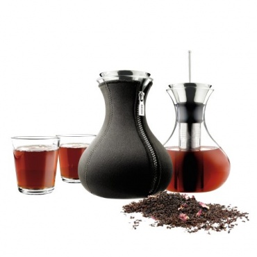 Mit einem stilvollen Neoprenmantel umhüllt, wird der Tee in der Kanne lange warm gehalten. Die zwei hübschen Teegläser und die Kanne sind aus hitzbeständigem Glas gefertigt und auch das Aufbrühen einer halben Kanne ist dank des innovativen Konzepts möglich, da der Filter bis zum Kannenboden reicht. Der tropffreie Gießer ermöglicht das reibungslose Einschenken des Tees, der in der Kanne sein volles Aroma entfalten kann.