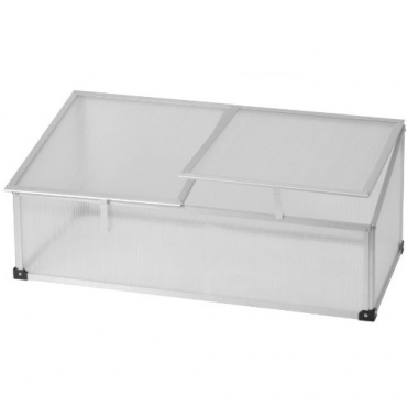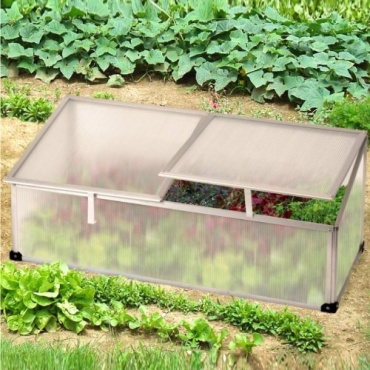 Das Gestell des Tomatengewächshauses mit Frühbeet von Expo Börse besteht aus witterungsbeständigen Aluminiumrohren, die ohne Werkzeug zusammengesteckt werden können. Die Seitenteile sind aus leicht transparentem Kunststoff hergestellt und haben zwei Fenster für die Belüftung. Dieses Gewächshaus besitzt keinen Boden und kann deshalb leicht demontiert und an einen anderen Ort wieder montiert werden.