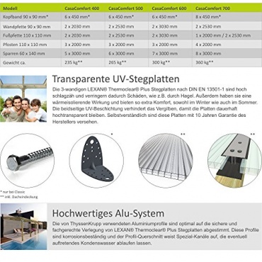 Sicher ist, dass dieser Carport eine geprüfte Qualität und hervorragende Verarbeitung aus deutscher Herstellung garantiert. Der Carport bietet ebenso den Vorteil, dass er für 10 Jahre nicht gestrichen oder imprägniert werden muss durch Fatmoose. Das ist eine nachhaltige Imprägnierung, die sehr viel Arbeit spart und immer für einen gleichbleibenden guten Look sorgt. Mit einer Größe von 406 x 302 x 226 cm hat er die passenden Maße für jede Einfahrt.