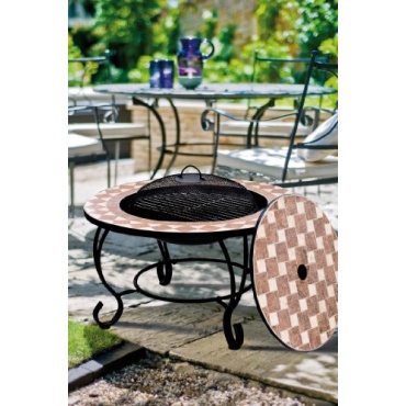 Wird dieses Möbelstück als Feuerschale verwendet, wird durch die Abdeckhaube vor Funkenflug geschützt.