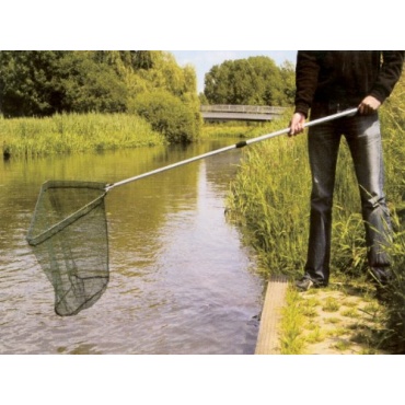 Der Kescher hat einen Teleskopstab aus Aluminium, dieser ist sehr stabil und kann bis auf 200 cm herausgezogen werden. Durch Zusammenschrauben wird der Stab auf die gewünschte Länge fixiert. Auch wenn der Stab voll ausgezogen ist, kann nichts biegen oder abknicken. Der Stab besitzt einen rutschhemmenden Griff, dadurch liegt er auch bei nassen Fingern sicher in der Hand. Das Netz hat eine ordentliche Größe von 50 x 43 x 59 cm, hiermit können auch größere Fische aus dem Wasser geholt werden.