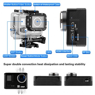 Die Full HD 1080p Kamera hat eine schöne Optik und ist qualitativ sehr gut verarbeitet. Es handelt sich um ein Modell, welches besonders für Outdoor, Fahrrad und Sport geeignet ist. Das Wifi Gerät macht scharfe Videos. Die Kamera ist leicht anzubringen und gehört daher bei jedem Ausflug mit ins Gepäck. Die Kamer hat ein leichtes Gewicht und ist bis zu 170° drehbar.