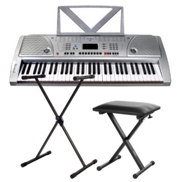 Das Funkey ist ein Einsteiger-Keyboard mit 61 Tasten in hübscher silber Farbe. Das LED Display leuchtet hell und gross und ist gut ablesbar. Hundert Sounds, sowie Hundert Rhythmen, und acht Stereo Demo Songs machen das Musizieren zur reinen Freude.