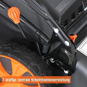 Der Antrieb sorgt dafür, dass das Arbeiten erleichtert wird, da durch die Hinterräder keine großen Kraftanstrengungen gemacht werden müssen, um den Rasenmäher fortzubewegen. Die Schnitthöhe ist in 7 Stufen von 25 bis 75 Millimeter verstellbar. Der Rasenmäher kann vier Tätigkeiten ausführen: Mähen, Fangen, Mulchen und Seitenauswurf. Der Fangkorb hat ein Volumen von 60 Liter und kann bequem entleert werden. Die Schnittbreite der Rasenmähers beträgt 51 cm.