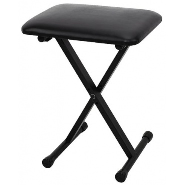 Die schwarze Keyboardbank ist aus Kunstleder gefertigt. Sie ist praktischerweise zusammenlegbar und kann platzsparend verstaut werden. Diese Bank ist in der Höhe und Breite verstellbar. Die Klavierbank hat ein Eigengewicht von 2,8 Kilogramm und ist leicht zu transportieren.
