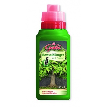 Der Flüssigdünger für Bonsais jeder Form und Größe kann optimal dosiert werden. Der organische und aus Mineralstoffen bestehende Flüssigdünger versorgt die Pflanze optimal mit allen Nährstoffen (auf der Basis von Guano), die die Pflanze benötigt. Man kann den Flüssigdünger sparsam einsetzen und sehr gut mit Wasser dosieren.