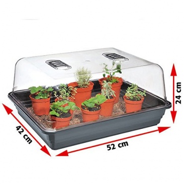 Im Zimmergewächshaus herrschen immer ein ideales Klima und eine ausreichende Luftfeuchtigkeit. So kann die Erde nicht austrocknen und Samen und späteren Pflanzen haben ausgezeichnete Bedingungen zum Keimen und Wachsen. Die Wanne ist wasserdicht, so entstehen keine Probleme beim Gießen. Der Deckel ist durchsichtig und besitzt ein gut funktionierendes Belüftungssystem. So bekommen die Jungpflanzen genügend Licht und im Inneren herrscht immer ein ideales Klima. Steht das Gewächshaus auf der Fensterbank, muss es regelmäßig gedreht werden, damit die Pflanzen nicht schief wachsen. Einfacher ist das Anbringen einer Pflanzlampe, hiermit wachsen die Pflanzen von alleine gerade.