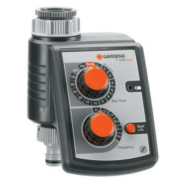 Die Bewässerungsuhr T 1030 plus von Gardena wird am Wasserhahn angeschlossen und die Bewässerung des Gartens wird automatisch gesteuert, zum Beispiel der Betrieb einer Tropfbewässerung. Die Beregnungszeiten werden ganz einfach programmiert. Das Bedienteil bequem abgenommen werden zur Programmierung . Die gewünschten Daten werden rasch über zwei große und leicht bedienbare Drehknöpfe eingestellt.