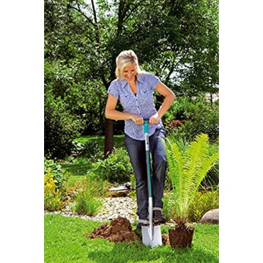 Mit beiden Händen können Damen den Spaten bedienen. Das macht die Arbeit noch einfacher. Ein weiteres Merkmal ist der Trittschutz. Hier kann der Spaten noch tiefer in die Erde eingestochen werden. Damen, die diesen Spaten benutzen sollte aber noch gesagt werden, dass der Spaten nicht zu tief in die Erde gesteckt werden sollte. Der Spaten muss mit der Erde wieder ausgehebelt werden. Ein weiteres Merkmal liegt in der Stoßdämpfung, die völlig neu ist und das das Blatt aus sehr hochwertigem Qualitätsstahl besteht.