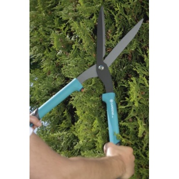Die Klingen der Heckenschere sind Antihaft beschichtet und verfügen über einen Ast Abschneider, der integriert wurde. Die Heckenschere ist mit ihrer Länge von nur 57 cm zum einen sehr pflegeleicht und muss nicht gewartet werden. Da sie einen geraden Schliff hat, ermöglicht sie einen exakten Formschnitt, was sicherlich auch der Messerlänge von 20 Zentimetern zu verdanken ist. Da die Gardena Heckenschere so leicht in der Hand liegt, ist ein zurecht stutzen und schneiden von Sträuchern, Buchsbäumen und diversen anderen Grünpflanzen kinderleicht geworden. Die Geleinlage im Griff verhindert Blasen an den Händen. Was auch ein längeres Arbeiten möglich macht.