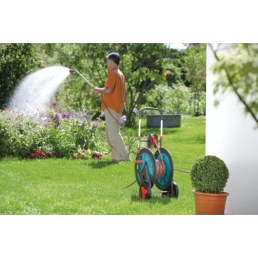 Ein besonders komfortables Gerät ist der Gardena 8006-20 Classic Schlauchwagen. Bei ihm wird der Schlauch dank der mitlaufenden Wickelhilfe bequem auf- und abgewickelt. Der speziell geformte Standfuß sorgt für die nötige Standfestigkeit auch beim Ziehen am Schlauch.