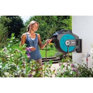 Mit der Gardena 8023-20 Comfort Wand - Schlauchbox gießt man jetzt noch effektiver seinen Garten, denn der Schlauch lässt sich mit geringem Krafteinsatz aus der Box ziehen. Der Qualitätsschlauch verfügt über einen Durchmesser von 13 mm, was ½ Zoll entspricht. Dadurch hat man immer einen kontinuierlichen Wasserdruck. Durch eine integrierte Schlauchführung wird das Knicken des Schlauches verhindert. An der Wandhalterung lassen sich alle Zubehörteile bequem befestigen, sodass man immer alles griffbereit zur Hand hat.