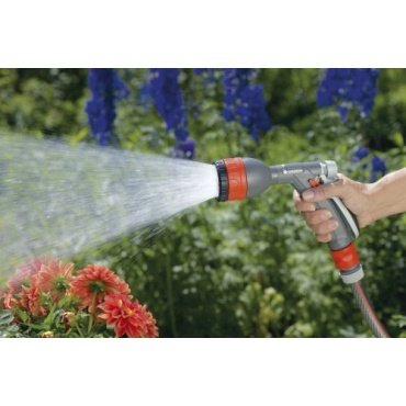 Man kann insgesamt vier Formen des Wasserstrahls einstellen. Den dünnen und gezielten Stechstrahl, den idealen Flachstrahl, sowie den starken Brausestrahl und den feinen Sprühstrahl. Die Multifunktions Brause von Gardena ist mit einem Impulsauslöser und einer Dauerarretierung mit bequemen Weichkunststoff-Elementen versehen. Die Gardena Brause wird komplett mit einem Schlauchstück geliefert und ist sofort einsatzbereit.