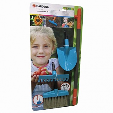 Solches Spielzeug ist kein wirkliches Spielzeug. Es ist von Gardena und kann sehr nütztlich für die Kinder sein. Diese Kinder können mit dem Werkzeug alles mögliche bearbeiten. Der Garten wird im Nu sauber und gepflegt aussehen und viel besser wirken. Ein solcher Garten braucht auch eine solche Pflege. Dieser Garten ist immer genau richtig ausgestattet und macht viel Freude. Dieses Werkzeug verfügt über einen Stiel der per Stecksystem mit den Teilen verbunden wird.