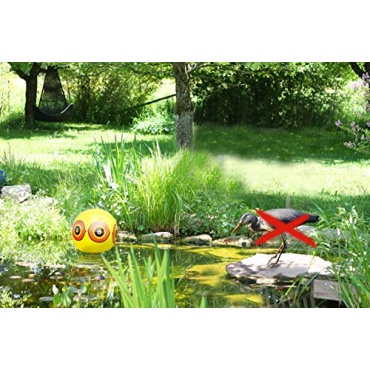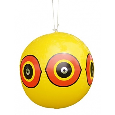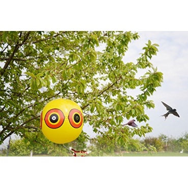 Dieser Vogelfrei Ballon zur Vogelabwehr der Firma Gardgio hilft dabei, den Garten vor hungrigen Vögeln zu schützen. Auf dem gelben Ballon wurden Raubtier-Greifvogelauge aufgedruckt, um kleinere Vögel abzuhalten. Der Ballon wiegt gerade mal 141 Gramm und hat einen Wirkungsbereich von ca. 40 Quadratmetern. In größeren Gärten sollten daher zwei Ballons aufgehängt werden.