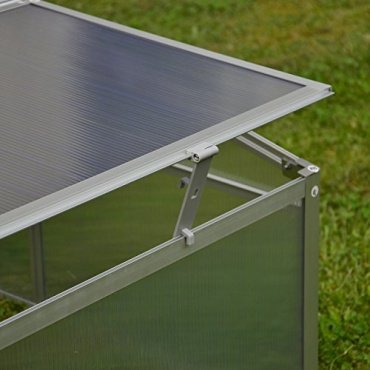 Die Konstruktion ist äußerst witterungsbeständig und der stabile Alu-Rahmen sorgt für den nötigen Halt. Eine einfache Montage sowie Demontage sind ebenfalls gewährleistet. Mit einer Abmessung von 100 x 100 x 48 cm und einem sehr geringen Gewicht, ist das Frühbeet sehr flexibel in seinem Einsatzgebiet. Die Hohlkammerplatte sorgt für den gewünschten Schutz und die Fenster sind in der Höhe verstellbar und können natürlich fixiert werden. Fliegende Schädlinge können den Pflanzen somit keinen Schaden mehr anrichten.