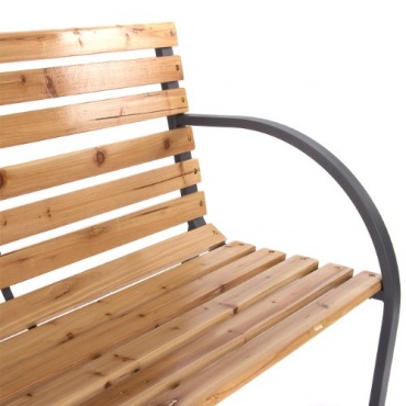 Diese Gartenbank ist aus massivem, lackiertem Tannenholz hergestellt. Die Armlehnen und Beine bestehen aus Stahlrohr. Sie passt perfekt in jeden Garten, man kann sich gemütlich niederlassen und jede Sonnenstunde genießen. Da die Bank nur etwa 11 kg wiegt, lässt sie sich bei starker Hitze einfach zu einem Schattenplätzchen transportieren. Die Gartenbank ist hochwertig verarbeitet und sehr stabil und robust.