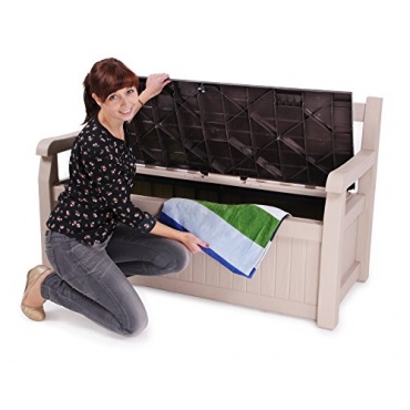 Eine Bank und Kissenbox in einem Gegenstand. Die Box ist wirklich gut und die Bank ist auch sehr bequem. Wer möchte, kann sich auch hierfür ein tolles Kissen kaufen. Das Kissen kann dann ganz einfach in der Box verstaut werden. Die Box ist immer ein guter Gegenstand wenn nicht viel Platz vorhanden ist. Dieser Platz kann nun geschaffen werden. Die Box bietet auch einen sicheren Platz für Gäste.
