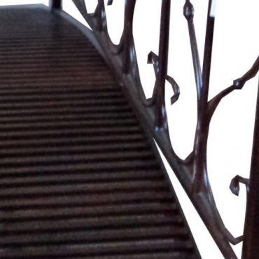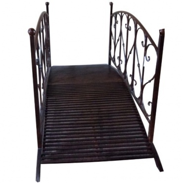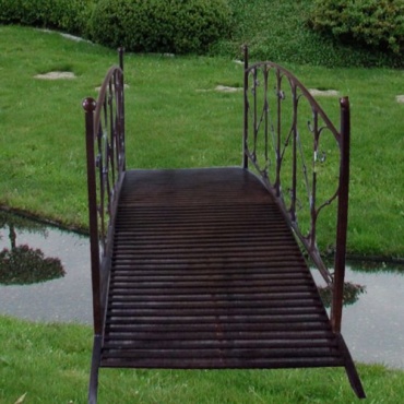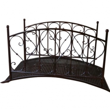 Das Geländer der Metalbrücke ist mit schönen Verzierungen versehen und die ganze Brücke ist farbbehandelt. Der rostbraune Farbton verleiht der Brücke ein antikes Aussehen, dass in einem klassisch angelegten Garten nostalgisch wirkt. Damit die attraktive Zierbrücke lange schön bleibt, kann man sie im Winter auch leicht im Schuppen oder im Keller verstauen. Die Brücke besteht aus vier Teilen und kann leicht zusammen gelegt werden. Auch die Montage ist einfach und kann auch vom Laien problemlos ausgeführt werden.