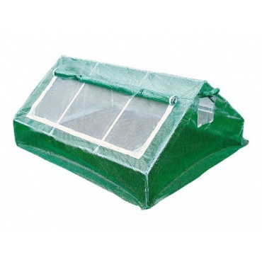 Die Konstruktion besitzt eine Gesamthöhe von lediglich 80 Zentimetern. Der Aufbau wird durch eine stabile Metallkonstruktion getragen. Auf dieser befindet sich ein robustes grünes BE-Bändchengewebe. Dieses bietet hinreichenden UV-Schutz. Sowohl seitlich als auch auf der Satteldachfläche sind Öffnungen angebracht. Über diese ist ein Zugang zu den Erzeugnissen möglich. Auch können Nutzer hierüber das Klima regulieren.