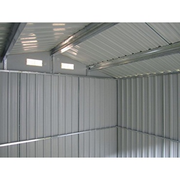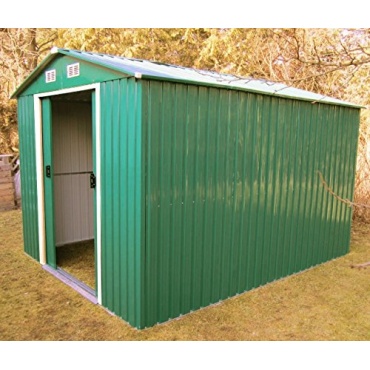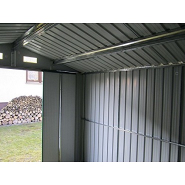 Das grüne Gartenhaus passt von der Farbe her sehr gut in den Garten. Dank der breiten doppelten Schiebetüren können auch große Geräte oder Möbel problemlos hinein- und herausgetan werden. Das verzinkte Stahlblech bedarf weiter keiner Behandlung oder Pflege. Der Aufbau nimmt mehrere Stunden in Anspruch und sollte von mehreren Personen ausgeführt werden. Es sind auch einige Vorarbeiten nötig, der Boden muss zumindest begradigt werden, wer es komfortabler möchte, muss Platten oder Ähnliches verlegen.
