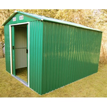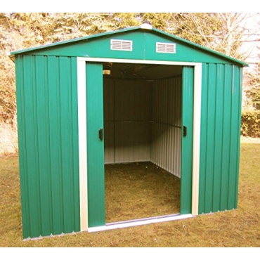 Nach der einfachen Anleitung ist das Gartenhaus schnell aufgebaut. Die grüne Farbe passt gut in die Natur des Gartens. Die Aufbewahrung der Geräte und Möbel ist problemlos möglich, da durch die vier Belüftungsöffnungen kein feuchtes oder heißes Klima entsteht, welches den Maschinen, Holzmöbeln oder ähnlichem schaden könnte. Die großen Schiebetüren sorgen für genügend Platz für den Zugang.