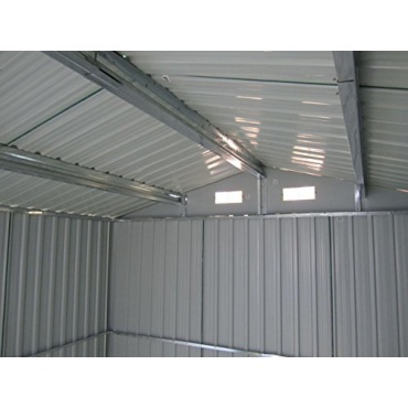 - Die vier Belüftungsöffnungen schaffen ein gutes Raumklima. Der Geräteschuppen ist mit seinen acht Quadratmetern sehr geräumig. Durch die Schiebetüren wird das Platzangebot noch erhöht.