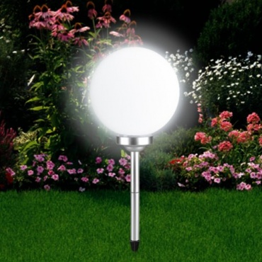 Die Leuchtkugel ist absolut wetterfest. Das Licht wirkt warmweiß. Ein Akku und Solarzellen sind in der Kugel integriert. Ein praktischer Dämmerungssensor sorgt dafür, dass die Lampe sich einschaltet. Ein Vorteil ist, dass eine lästige Verkabelung entfällt. Es entstehen überhaupt keine Betriebskosten. Als Leuchtmittel dienen 4 LEDs. Der Erdspieß ist 11 cm lang, er kann leicht in die Erde "gespießt" werden.