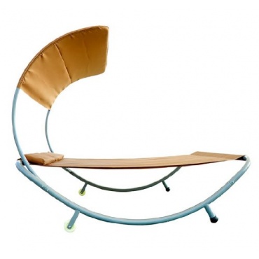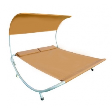 Die Gartenliege ist in der Farbe Sand zu erhalten. Die Gartenliege bietet eine Liegefläche für zwei Personen. Die Gartenliege ist gut geeignet für den Garten, am Pool, auf dem Balkon, für den Strand und für den Saunabereich. Der Dach der Gartenliege spendet ausreichend Schatten, ist wasserabweisend und zugleich auch resistent gegen Schimmel. Die Liege kann bei Nichtgebrauch einfach verschoben werden und besitzt zwei abnehmbare Kopfkissen.