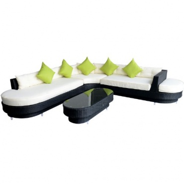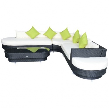Gartenlounge Polyrattan 20tlg.schwarz weiß Schwarz