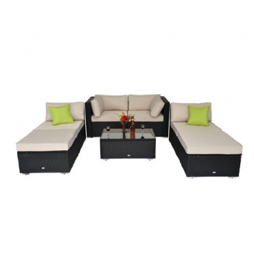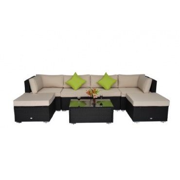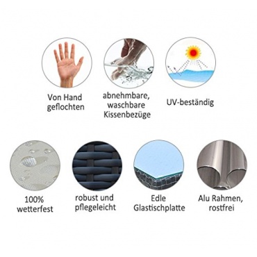 Die Sitzpolster garantieren einen hervorragenden Sitzkomfort. Die kleinen Dekokissen, die in einem attraktiven Grün sehr gut zu den beigen Sitzkissen passen, sind im Preis inbegriffen. Das Set besteht aus einem Tisch, zwei Sofa Eckteilen, sowie aus einem Hocker und zwei Sofa innenteilen. Die 12 Sitz- und Rückenkissen sind abnehmbar und 2 Dekokissen sorgen für ein Highlight. Diese Sitzecke besticht durch ein schönes Design und einer hochwertigen Verarbeitung und Qualität.