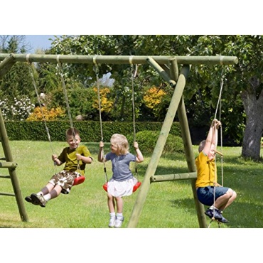 Diese Doppelschaukel ist für Kinder ab 3 Jahren geeignet und ein tolles Spielgerät für den Garten. Das Klettergerüst ist insgesamt 440 cm lang, 190 cm breit und hat eine Höhe von 210 cm. Das Klettergerüst wird zerlegt geliefert und muss selbstständig aufgebaut werden, eine Anbauanleitung liegt bei. Der Durchmesser des Schaukelbalken beträgt 10 cm, der der Pfosten 8 cm. Das Klettergerüst ist dadurch sehr stabil und robust.