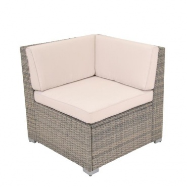 Der trendige Ecksessel "Maxime" bietet sich als eine wunderbare Oase der Entspannung im eigenen Garten an. Der Sessel aus pflegeleichtem Rattan-Geflecht ist hochwertig verarbeitet und lädt durch sein bequemes Sitzkissen zum längeren Verweilen darauf ein. Die Fußkappen aus Aluminium geben dem Gartensessel einen moderen Touch und wandeln ihn in eine kleine Sensation um. Das Gestell ist ebenfalls aus stabilem Aluminium gefertigt.