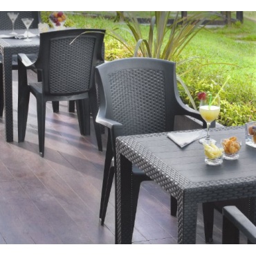 Bestehend aus robusten Kunststoff hält der Stuhl vor extremen Wetterbedingungen stand und bleicht nicht so schnell von der Sonne aus. Mit einer Sitzfläche von 42 x 44 cm kann der Stuhl gestapelt werden und besitzt somit einen platzsparenden Charakter. In der Lieferung befinden sich 4 Stühle, ohne Sitzkissen. Somit kann durch eigene Kreativität der Stuhl aufgepeppt werden. Durch seine Breite von 57 cm und seiner Tiefe von 62 cm passt der Stuhl hervorragend in jede Sitzecke und sieht dazu noch optisch ansprechend aus.