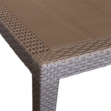 Das rechteckige braune Gartenmöbel in Rattan Optik ist sehr pflegeleicht und bis zu sechs Personen können an dem Kunststofftisch Platz nehmen. Der Aufbau des Tisches ist sehr einfach und dank des einfachen Stecksystems und der Fixierung durch Plastikschrauben auch für den Laien zu bewältigen. Der mokka farbene Kunststofftisch ist sehr belastbar und leicht zu reinigen.