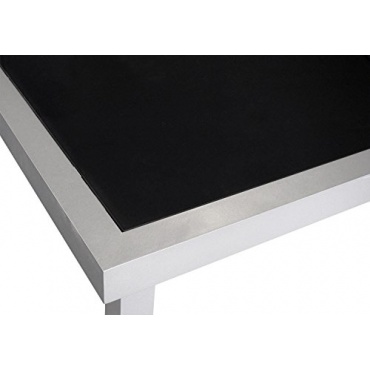 Dieser Gartentisch lädt Sie und Ihre Gäste zum gemütlichen Verweilen ein. An diesem Tisch haben Ihre Gäste viel Platz und können in geselliger Runde mit Ihnen Mahlzeiten einnehmen oder gemeinsam entspannen. Der Tisch hat eine undurchsichtige Glasplatte, die sehr stabil und robust ist. Der Tisch ist hochwertig verarbeitet und qualitativ sehr gut. Die Tischbeine sind aus Aluminium, was ein sehr stabiles Metall ist.