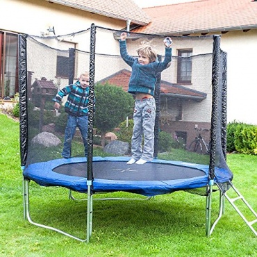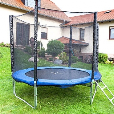Das Gartentrampolin 250 von ms-point ist von einem speziellen Sicherheitsnetz umgeben. Beim Toben und Springen kann niemand herunterfallen. Der Aufbau ist denkbar einfach und so kann es in kürzester Zeit im Garten oder anderen Bereichen aufgebaut und genutzt werden. Die Verarbeitung des Trampolins ist hochwertig und bietet gerade auch Kindern besten Schutz. Eine schützende Randabdeckung, das Sicherheitsnetz, Wetterplane und Leiter sind inklusive.