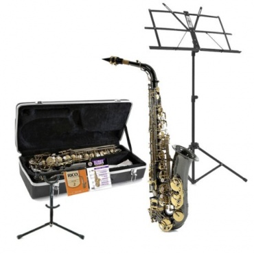 Das schicke Saxophon, das auf Präzision gezogene Tonlöcher hat, wird in einem dazugehörigen, gepolsterten Hartschalenkoffer geliefert. Zudem gehören ein Notenständer, ein Instrumentengurt, zehn Rico Blätter und ein Reedguard zu dem Komplettpaket, das mit einem sehr guten Preis-Leistungsverhältnis überzeugt.